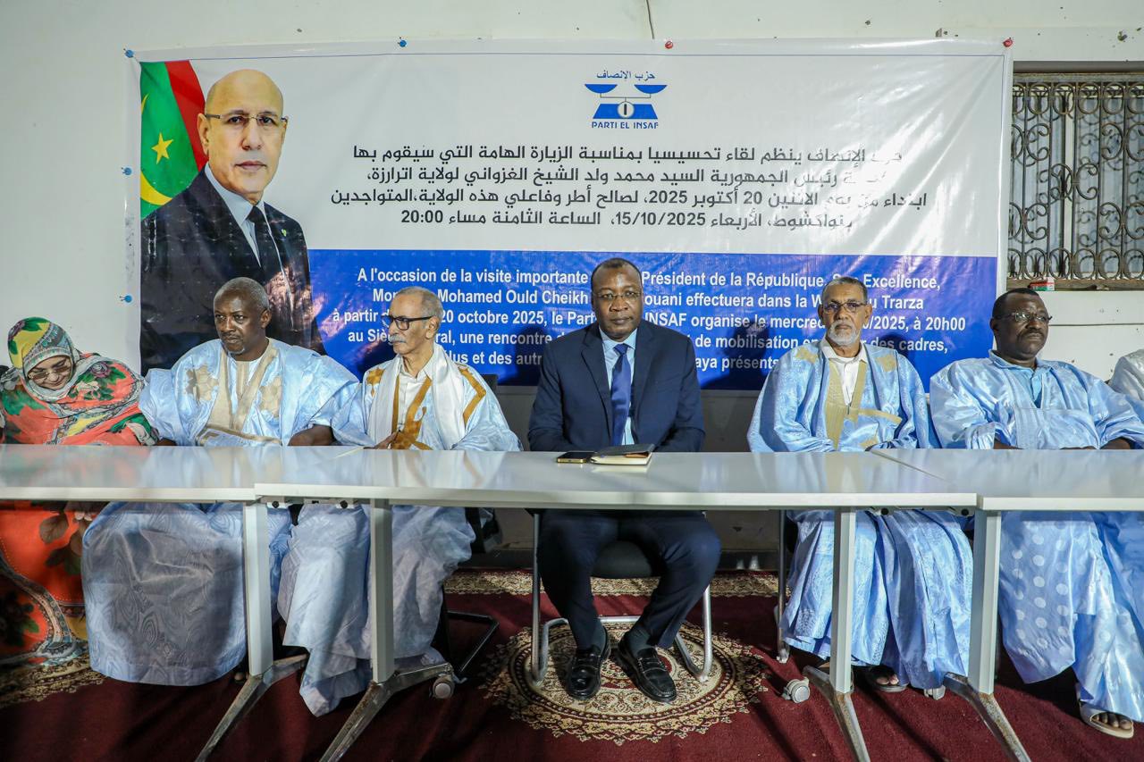 نظم حزب الإنصاف تحت رئاسة السيد سيد أحمد ولد محمد رئيس الحزب مساء اليوم الأربعاء 15 أكتوبر 2025 لقاء تحسيسيا لصالح أطر ومنتخبي وفاعلي ولاية أترارزة المقيمين بنواكشوط، وذلك بمناسبة الزيارة الهامة التي سيقوم بها فخامة رئيس الجمهورية، السيد محمد ولد الشيخ الغزواني لولايتهم يوم الإثنين المقبل لإطلاق الحملة الزراعية لهذا العام.