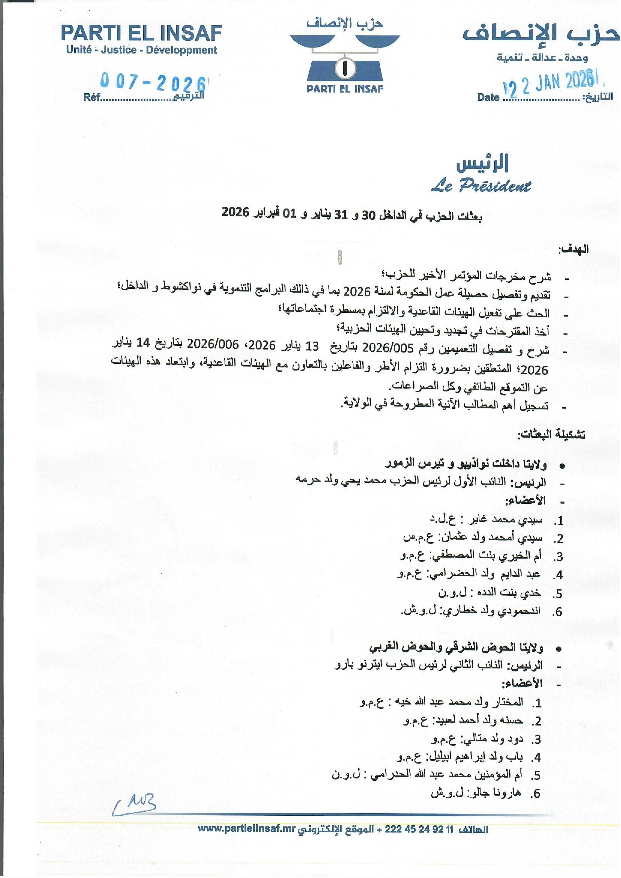 رئيس الحزب يوقع مذكرة تتضمن لائحة البعثات الحزبية إلى الداخل