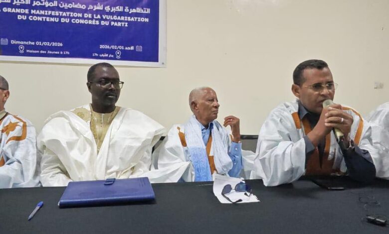 وشهد المهرجان حضورًا واسعًا للأطر والمنتخبين والوجهاء ومناضلي الحزب، في تعبير واضح عن تماسك الصف، والالتفاف حول الحزب، ودعم التوجهات السياسية والتنموية لفخامة الرئيس محمد ولد الشيخ الغزواني.