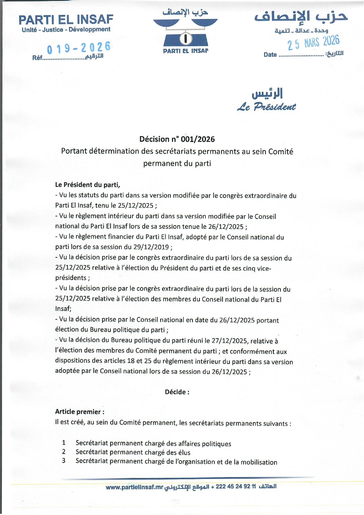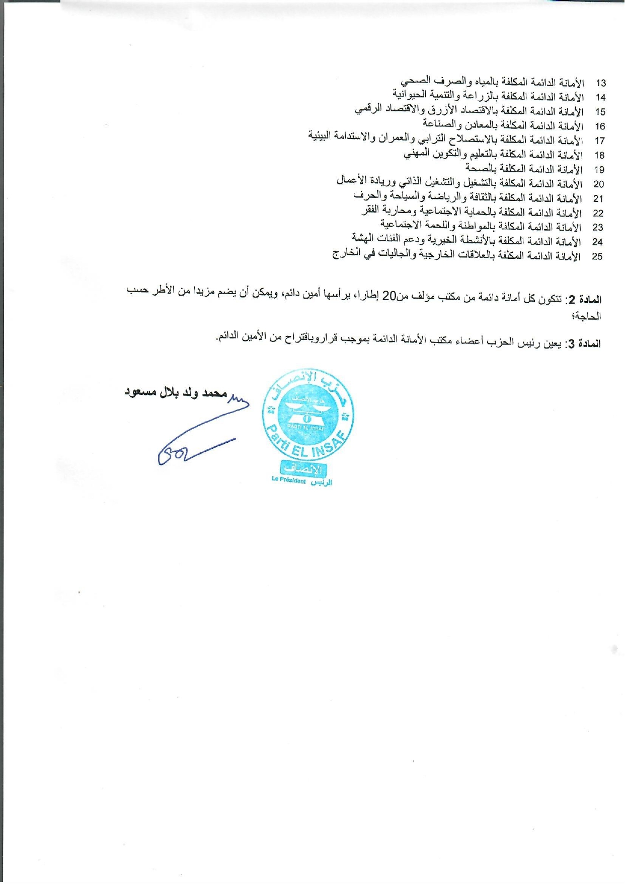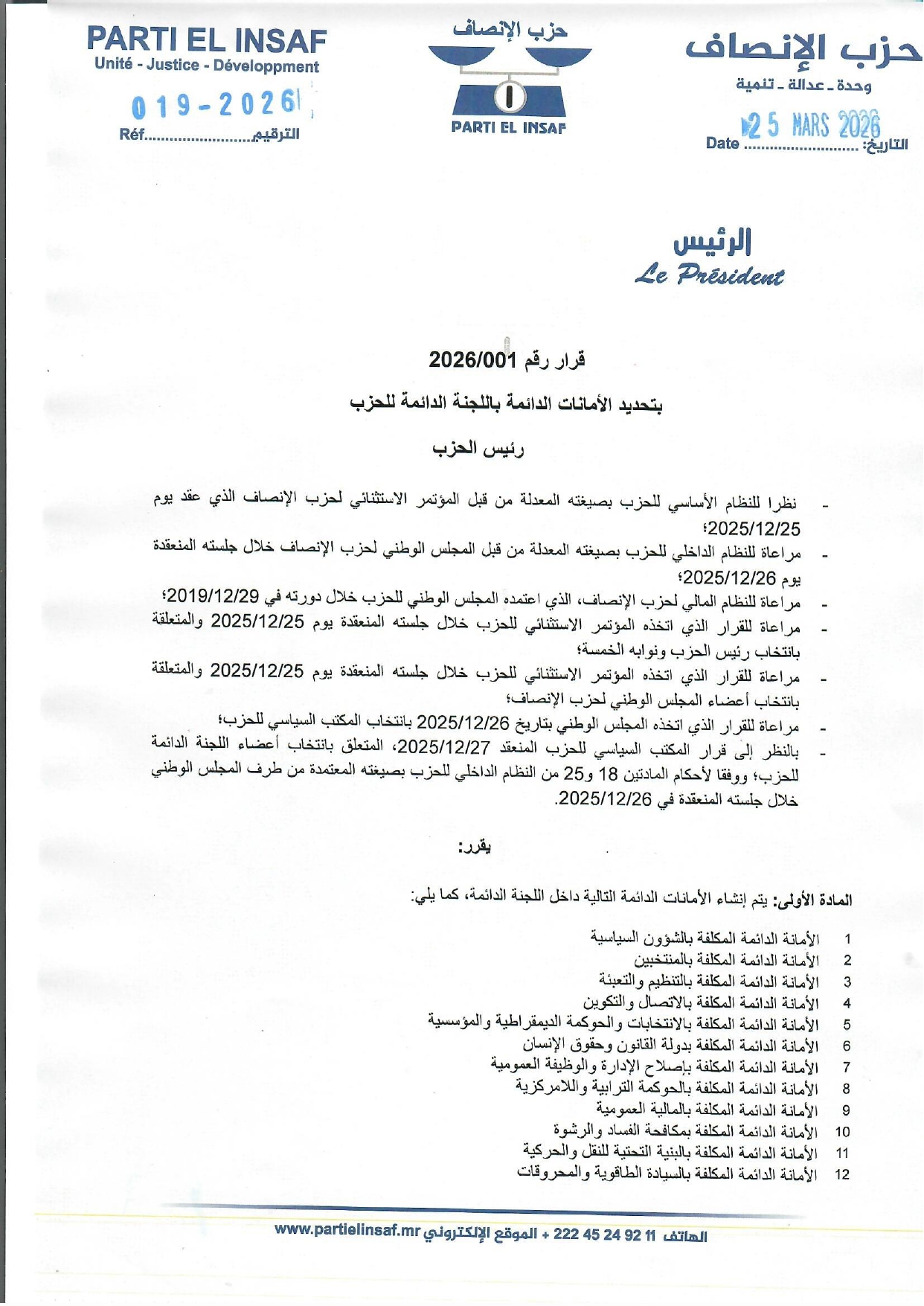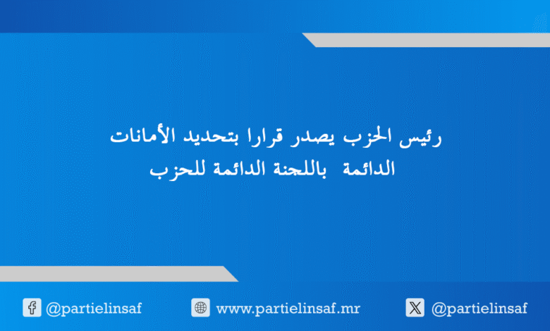 رئيس الحزب يصدر قرارا بتحديد الأمانات الدائمة باللجنة الدائمة للحزب