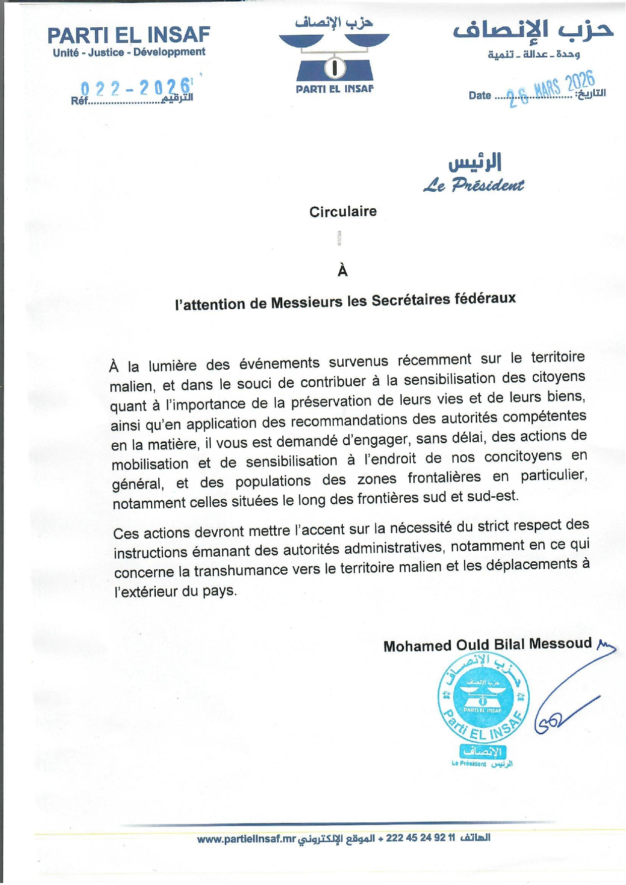 رئيس الحزب يصدر تعميما من أجل الالتزام بتعليمات السلطات حول الانتجاع خارج الحدود